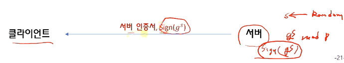 g, p는 공유. g에 랜덤한 값 s를 제곱하고 p로 mod 한 후 g^s mod p에 서명해서 전송