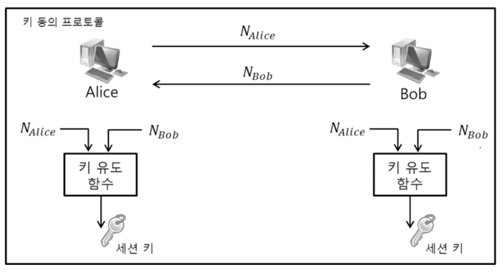 ∴ 위 그림처럼 서로 랜덤한 값을 주고 받고 이 두 값을 동일한 공개된 해쉬함수(키 유도 함수)에 넣어서 동일한 세션 키를 얻은 후