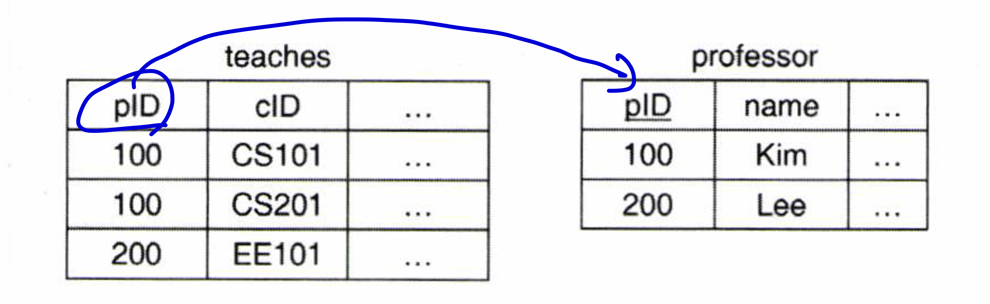 이때, Insert into myProfessor values ('12345', 'Lee', 'CS');를 하면 12345, Lee, CS, null이 추가됨.