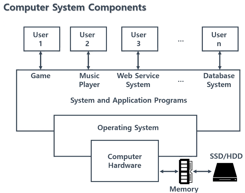 -> 매우 다양한 응용 프로그램들이 존재하고 이들은 반드시 시스템 소프트웨어와 함께 동작함.