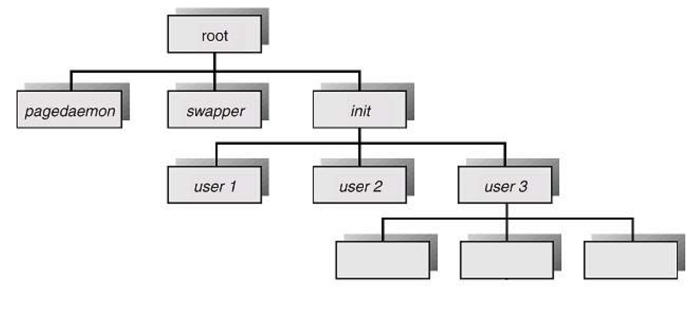 - 부모와 자식 프로세스의 관계로부터 새로운 프로세스가 생성이 됨(프로세스의 생성은 기존의 프로세스(부모 프로세스)로부터 생성)