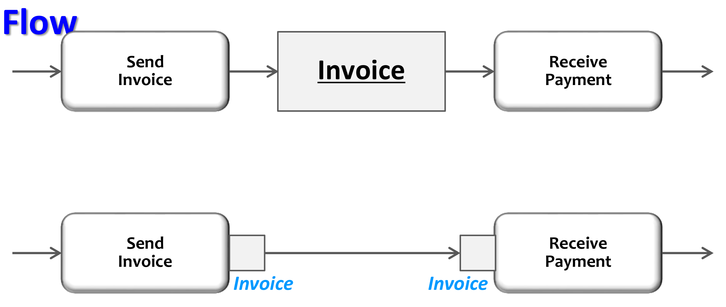 : 작업이 연달아 일어나는 Sequential Control Flow가 있음. 이때 객체나 데이터는 Control Flow에 따라 전달되지는 않음.