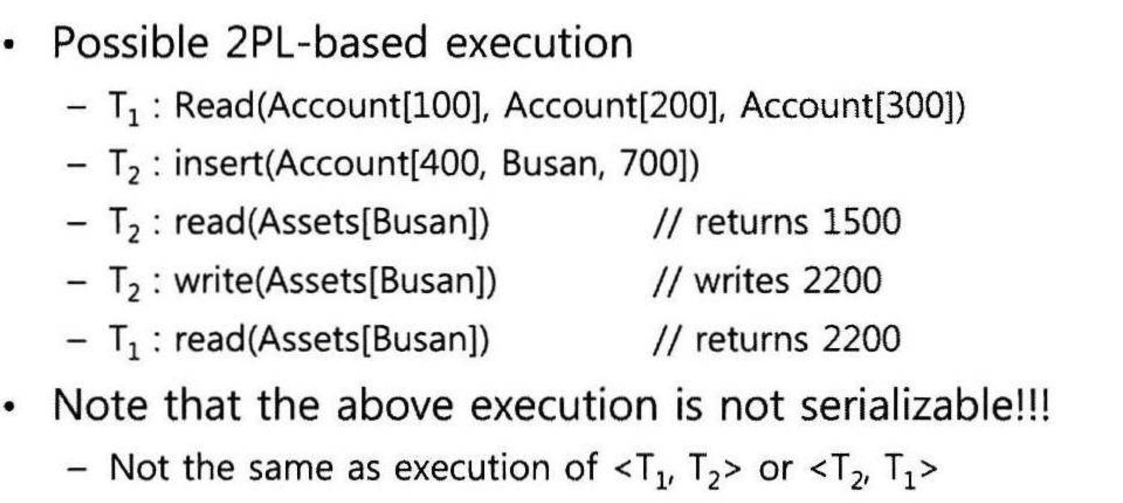 위 예시에서는 Locking이 Serializability를 보장하지 않는다! 왜...?!!!