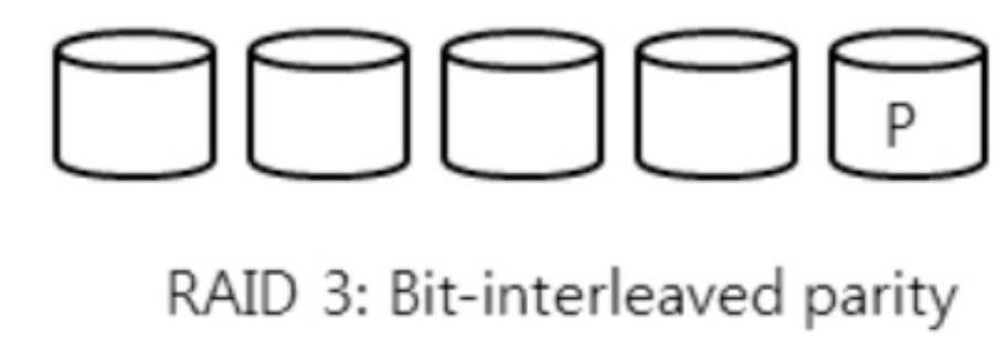 - RAID 3는 bit-level striping이기에 성능이 안 좋아서 안 씀.