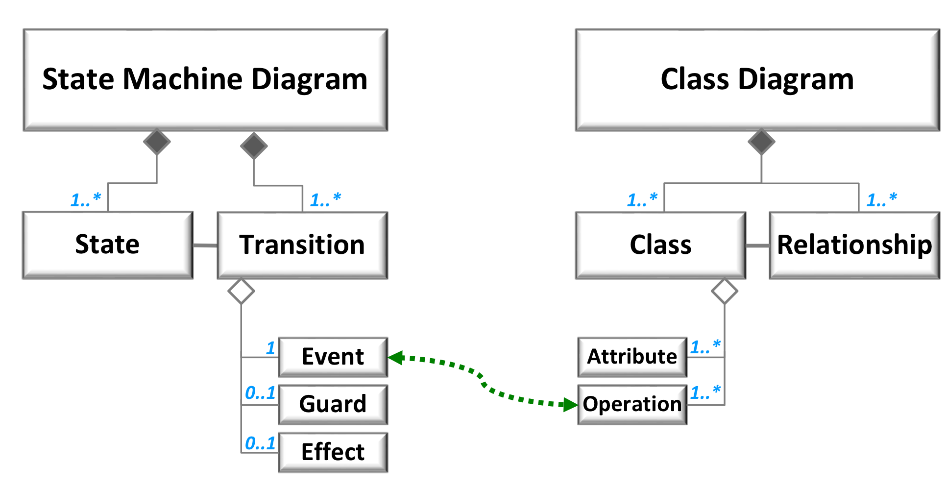: 클래스 다이어그램에서의 Operation과 SMD의 Event는 동일한 역할을 한다.