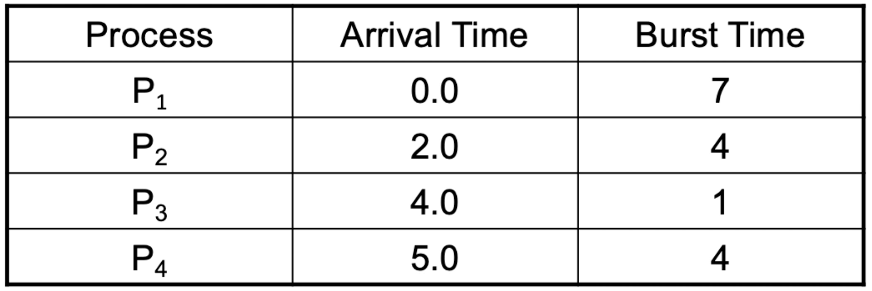 - 선점형 스케줄링: CPU 할당 받아 수행 중이더라도 CPU Burst Time이 자신의 현재 남은 시간보다 짧은 시간인 프로세스가 생성되면 그거에 CPU를 양보함.(= SRTF(Shortest Remaining Time First Scheduling))