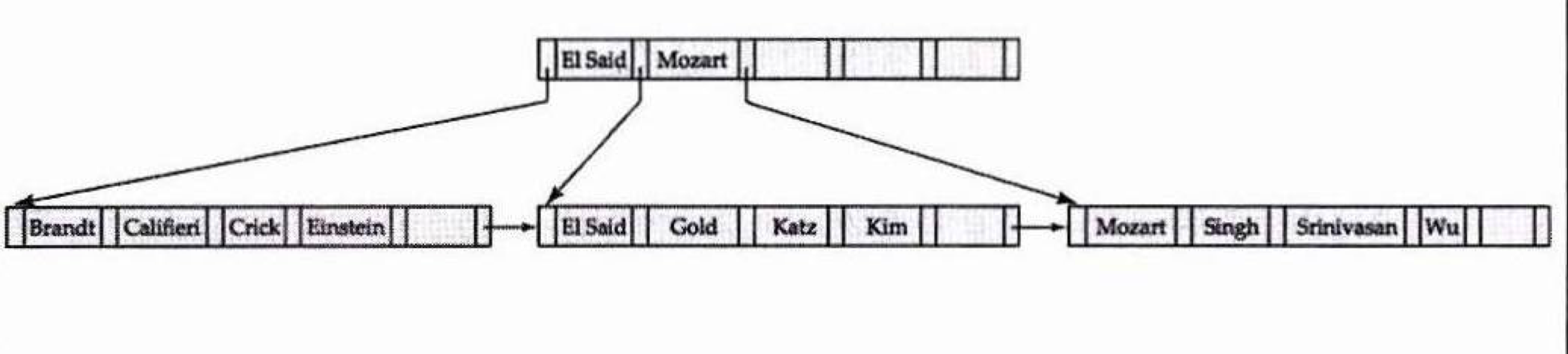 - 노드 내의 search-key는 정렬되어 있음. -> K1<K2<K3<...<Kn-1