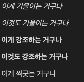 1. *, _ 를 문장에 붙여서 앞과 끝에 쓰면 기울여짐.