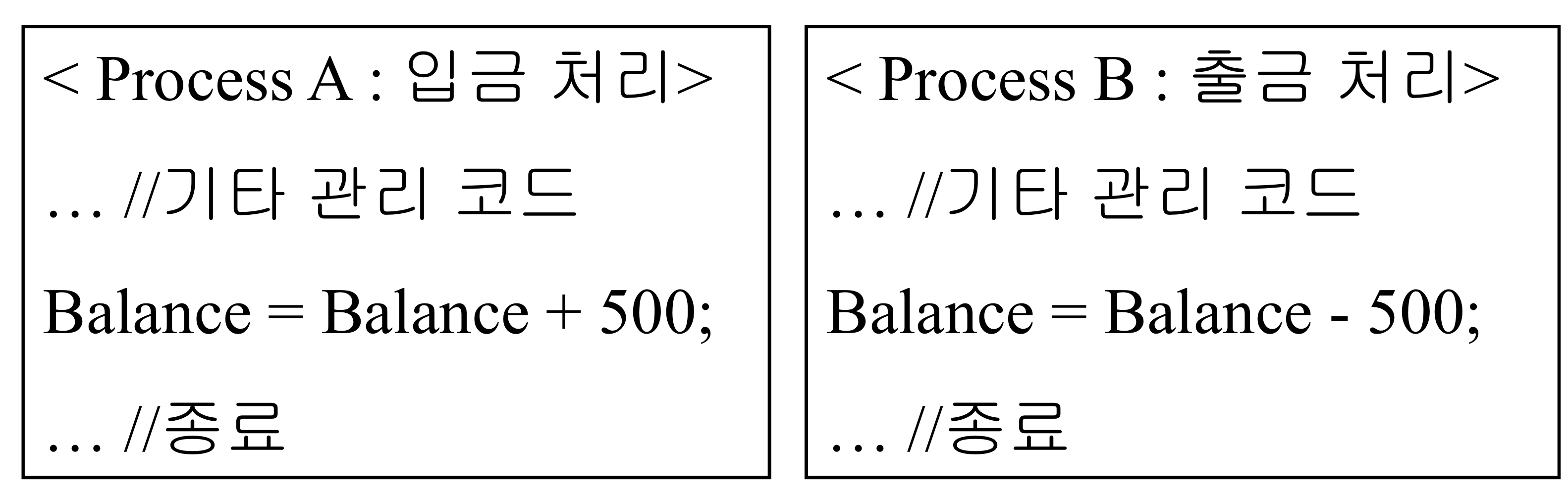 ex. 위 입출금 문제 예제에서는 Balance = Balance + 500; , Balance = Balance - 500;