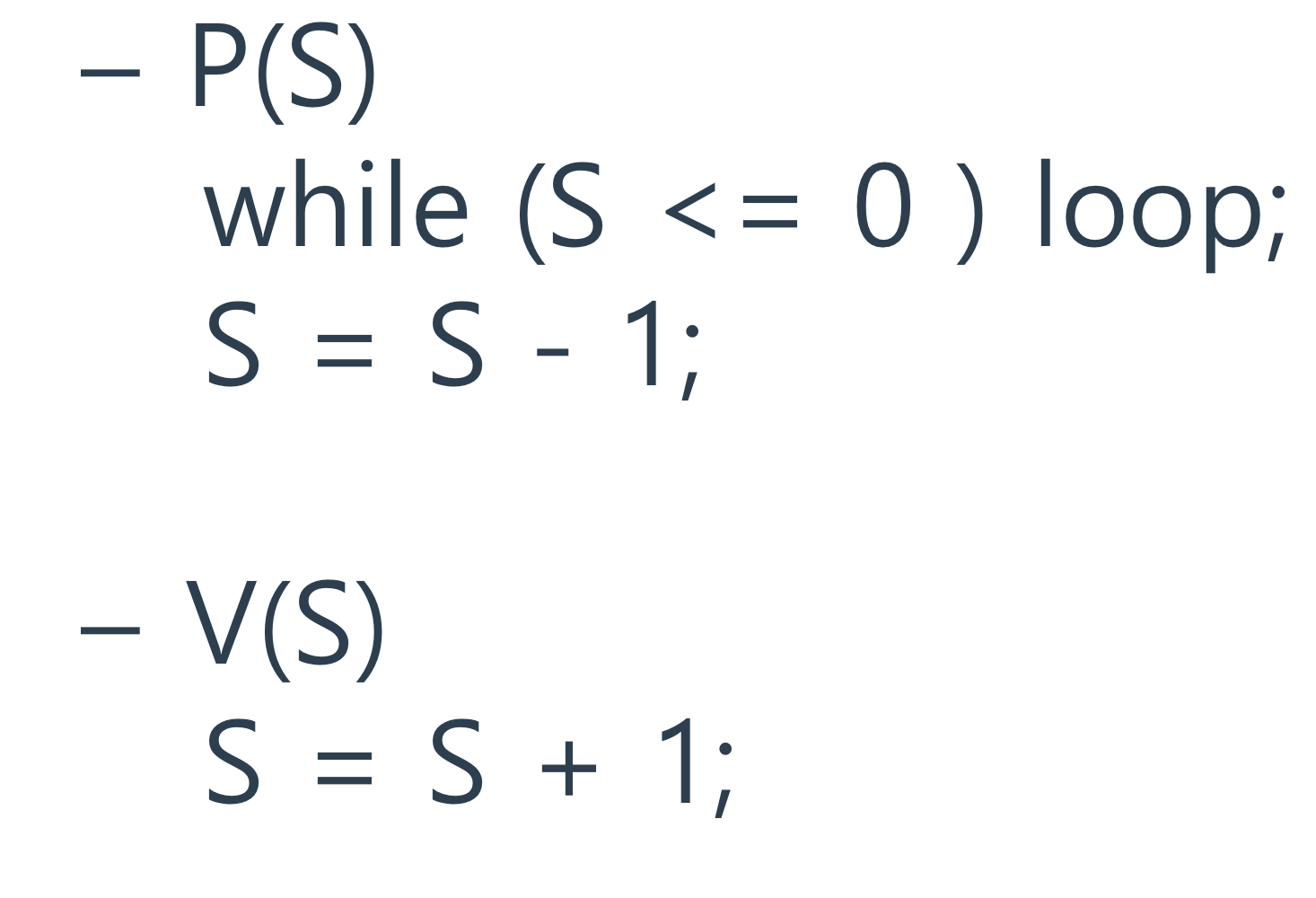 - V가 실행된다는 것은 Critical Section에서 실행 중인 프로세스가 없다는 것을 의미함.