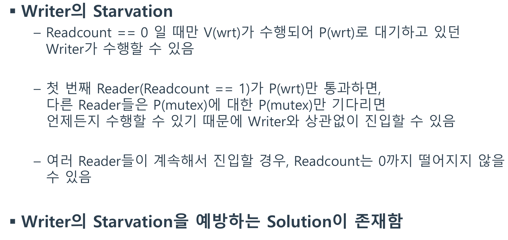 2) wrt 세마포어: Writers 사이의 동기화(Mutual Exclusion)를 관리함.