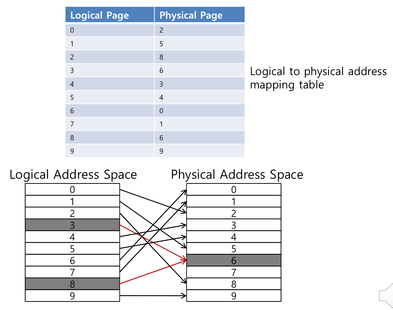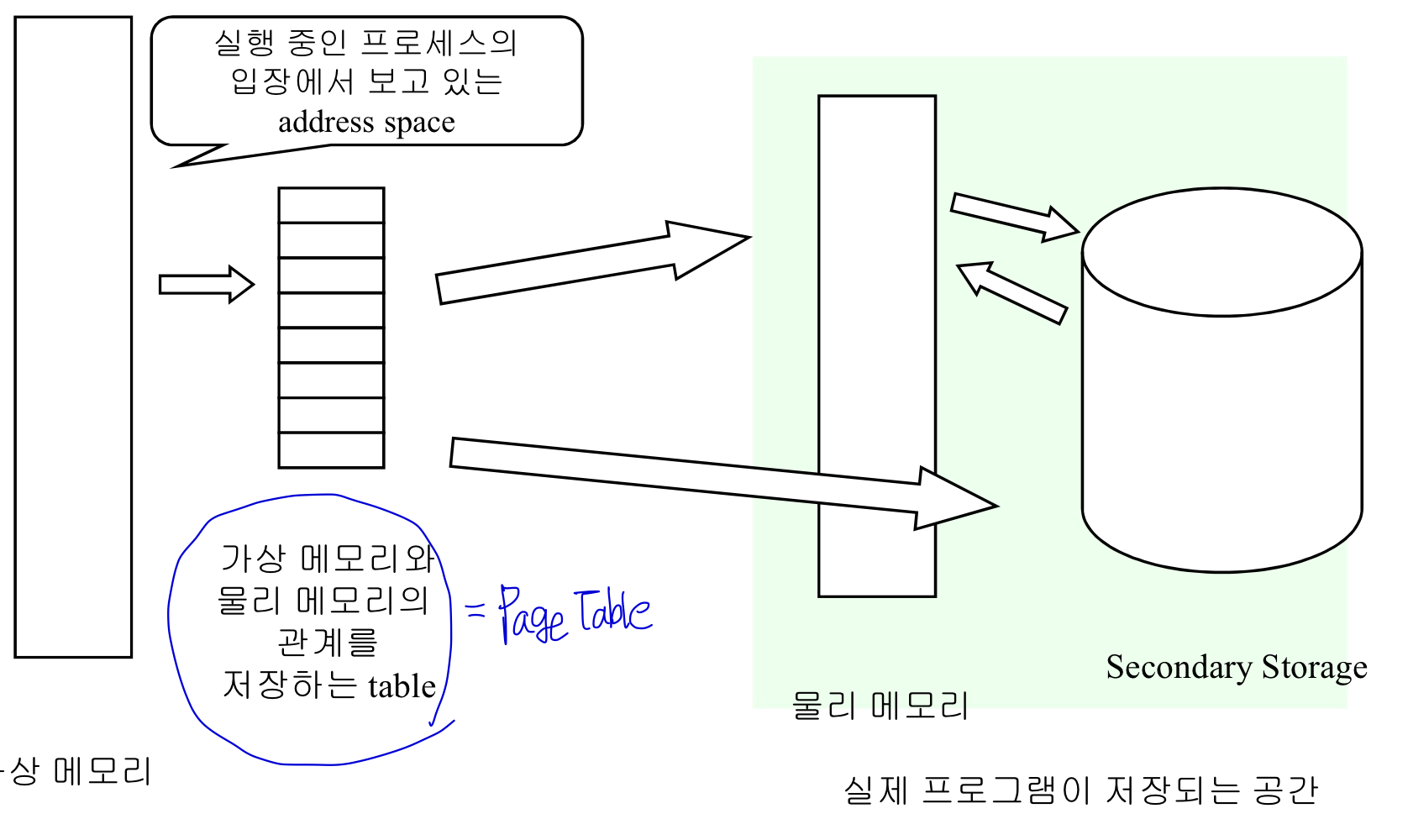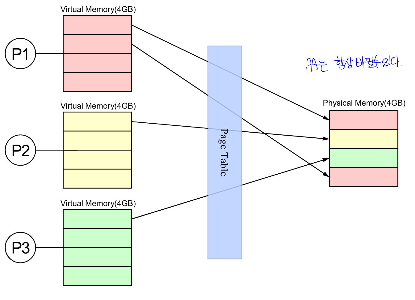 최근의 OS들은 PA를 각 프로세스에 고정적으로 사용하지 않고 바뀐다.