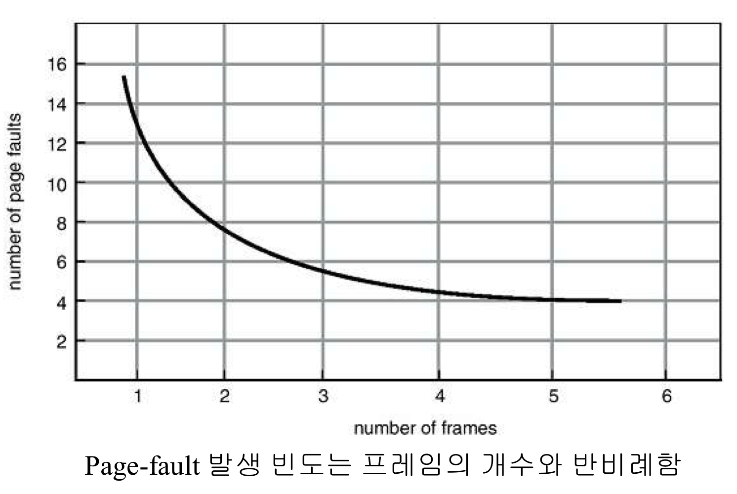 Page Fault는 프로세스가 Page를 참조하였을 때 해당 Page가 할당 받은 Frame이 없는 경우 발생함.