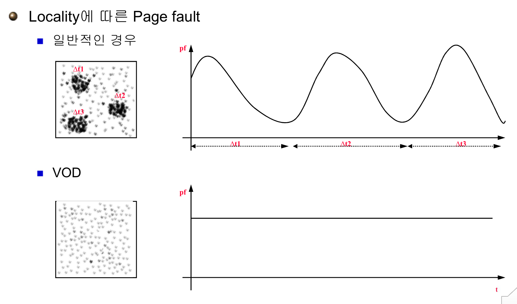 실험을 통해 Page Fault는 특정 시간대에 사용하는 Page가 집중되어 있음을 알 수 있다.