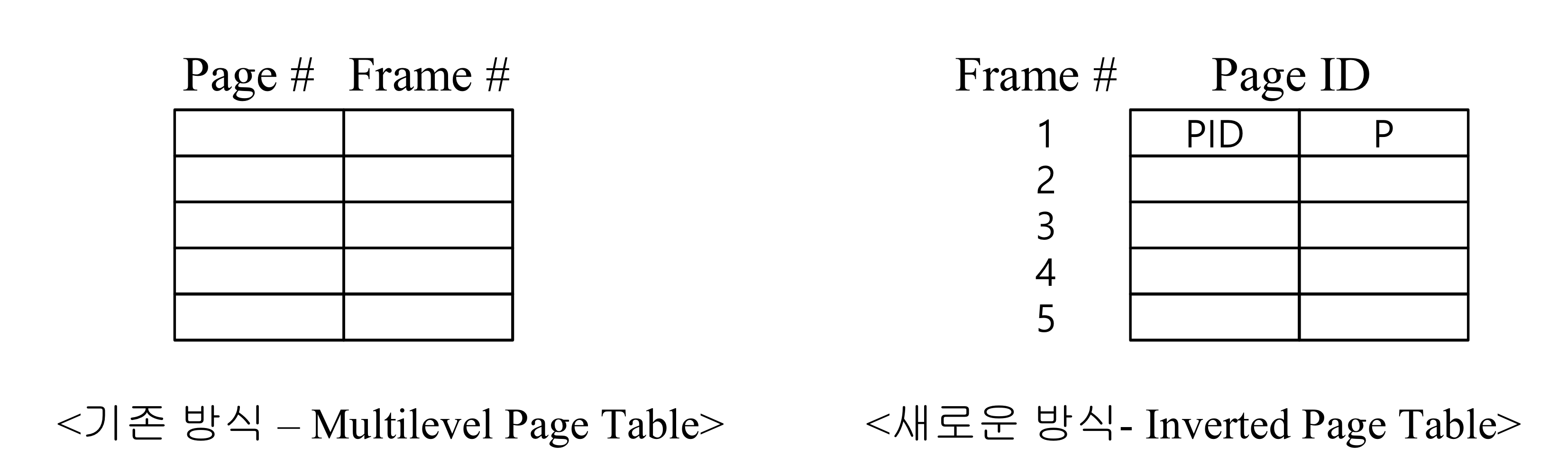 - 기존 방식: 찾고자 하는 Page의 번호를 받아오면 그에 맞는 PM(Frame)을 찾아오는 방식.
