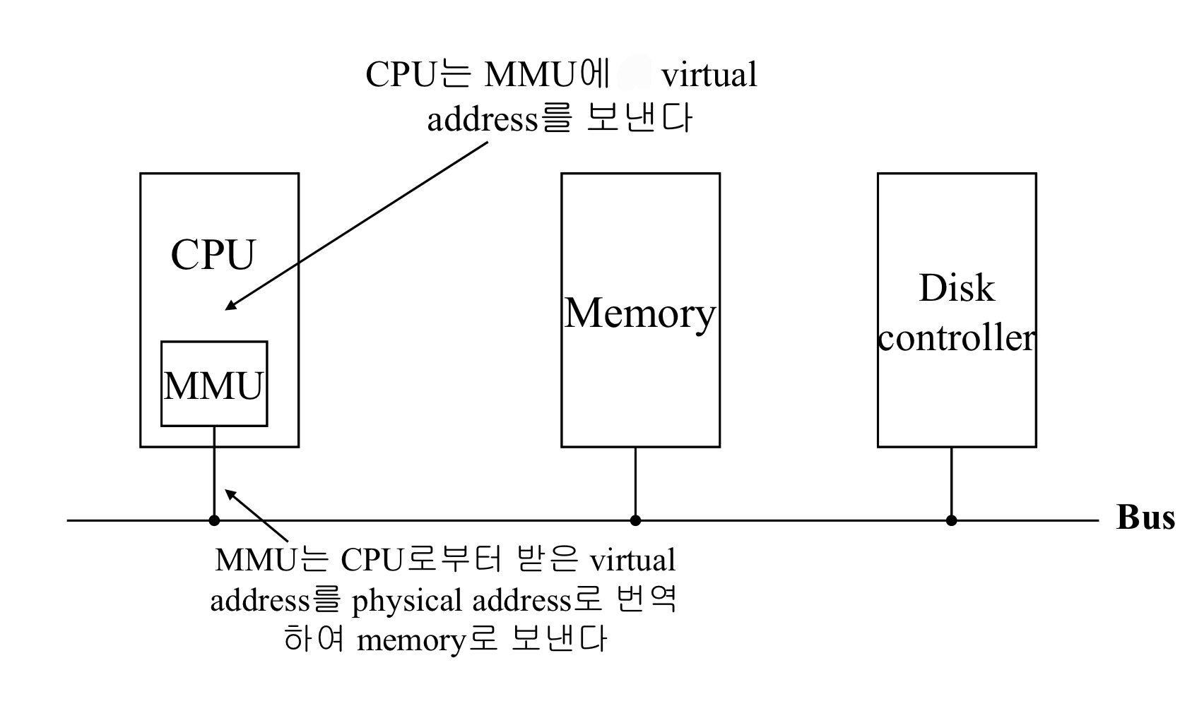 - CPU 관점의 주소는 물리 주소도, 가상 주소도 될 수 있음.