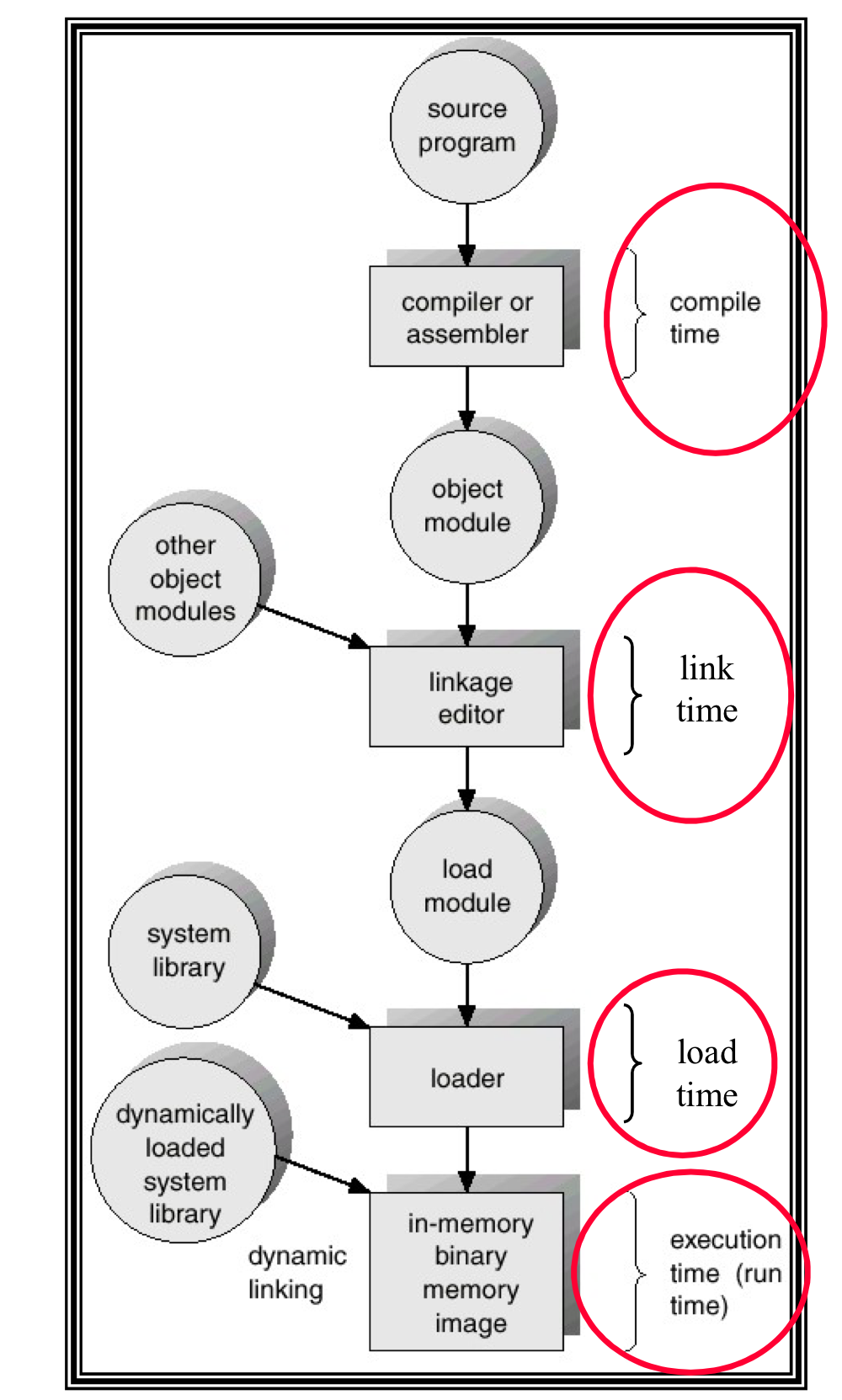 3) Load Time(로딩 시 물리 주소에 대한 바인딩이 일어난다.)