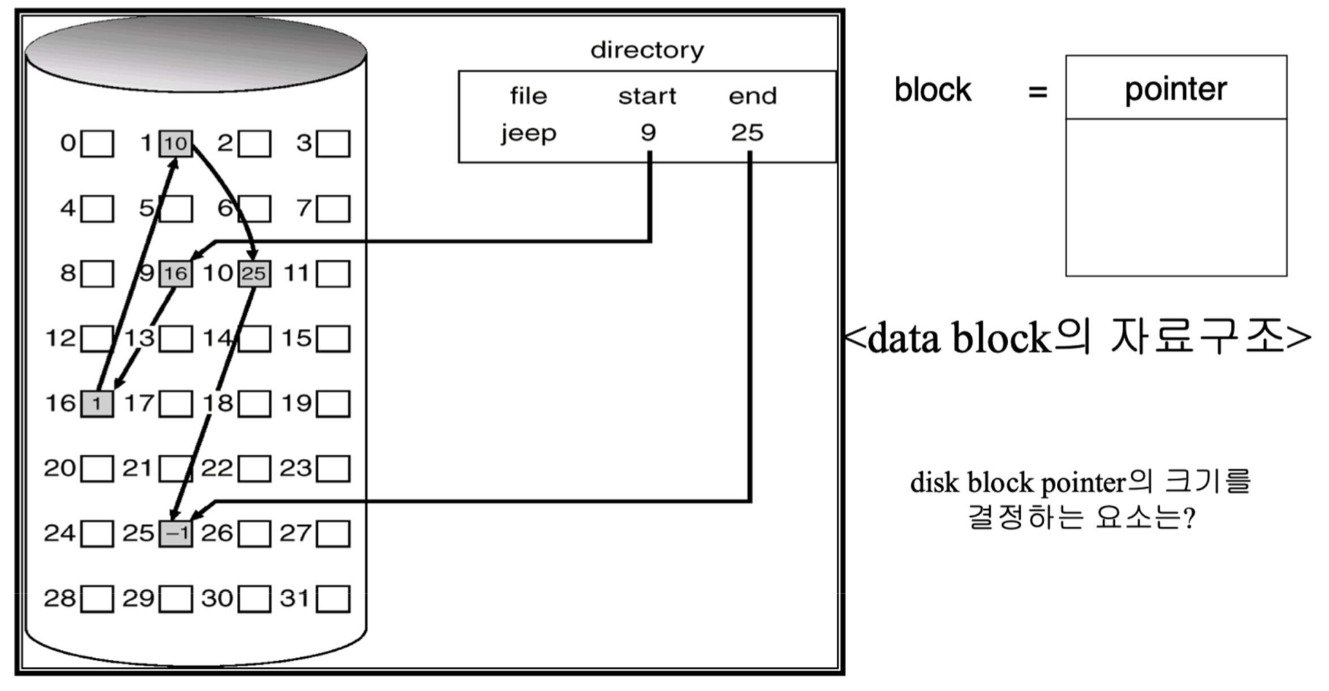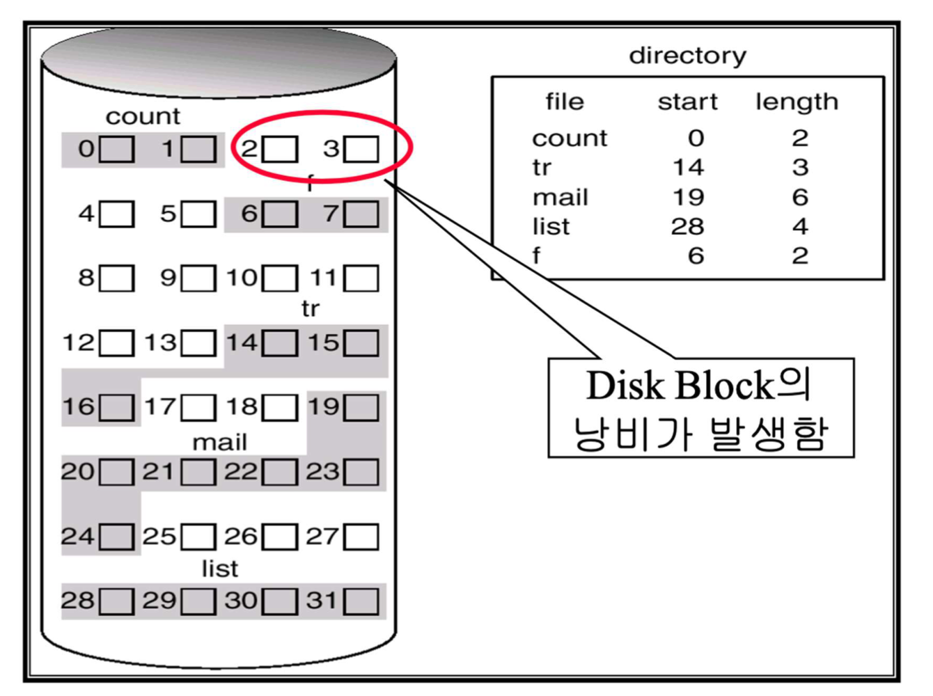 2) OS에서 File의 끝에 예비용 Block을 남겨둘 경우, Disk의 공간을 낭비함.