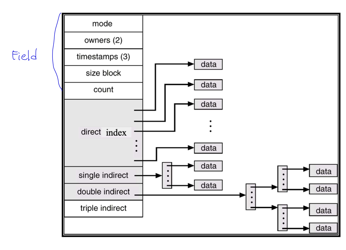 - attribute, ownership 등과 같은 정보들은 File의 I-node 자료구조에 직접 저장되어 있음.