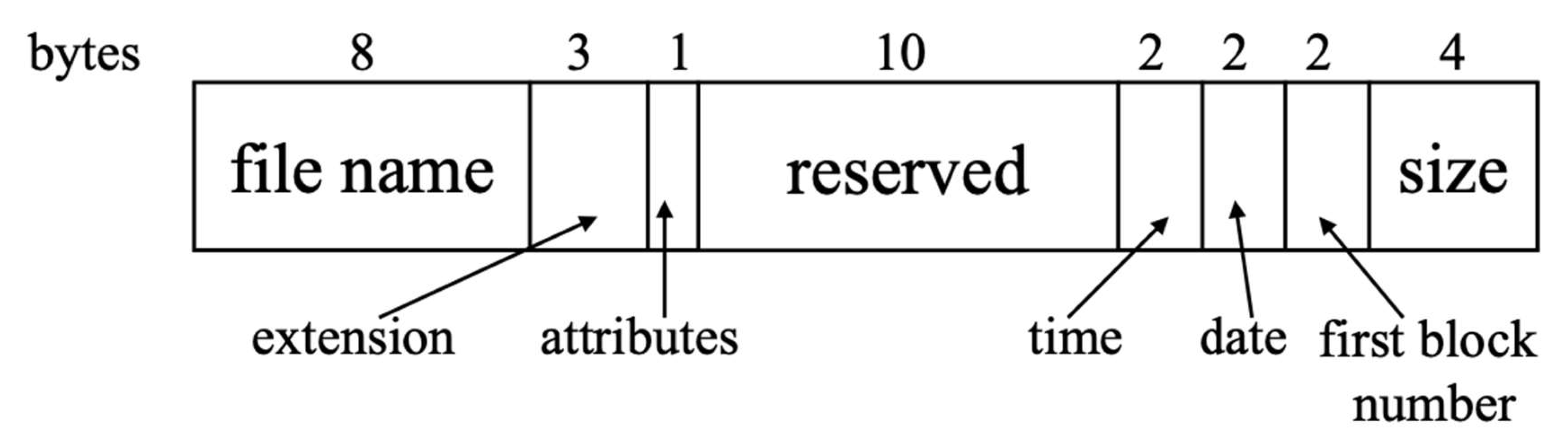 Directory entry: 디렉토리를 표현하기 위한 자료구조