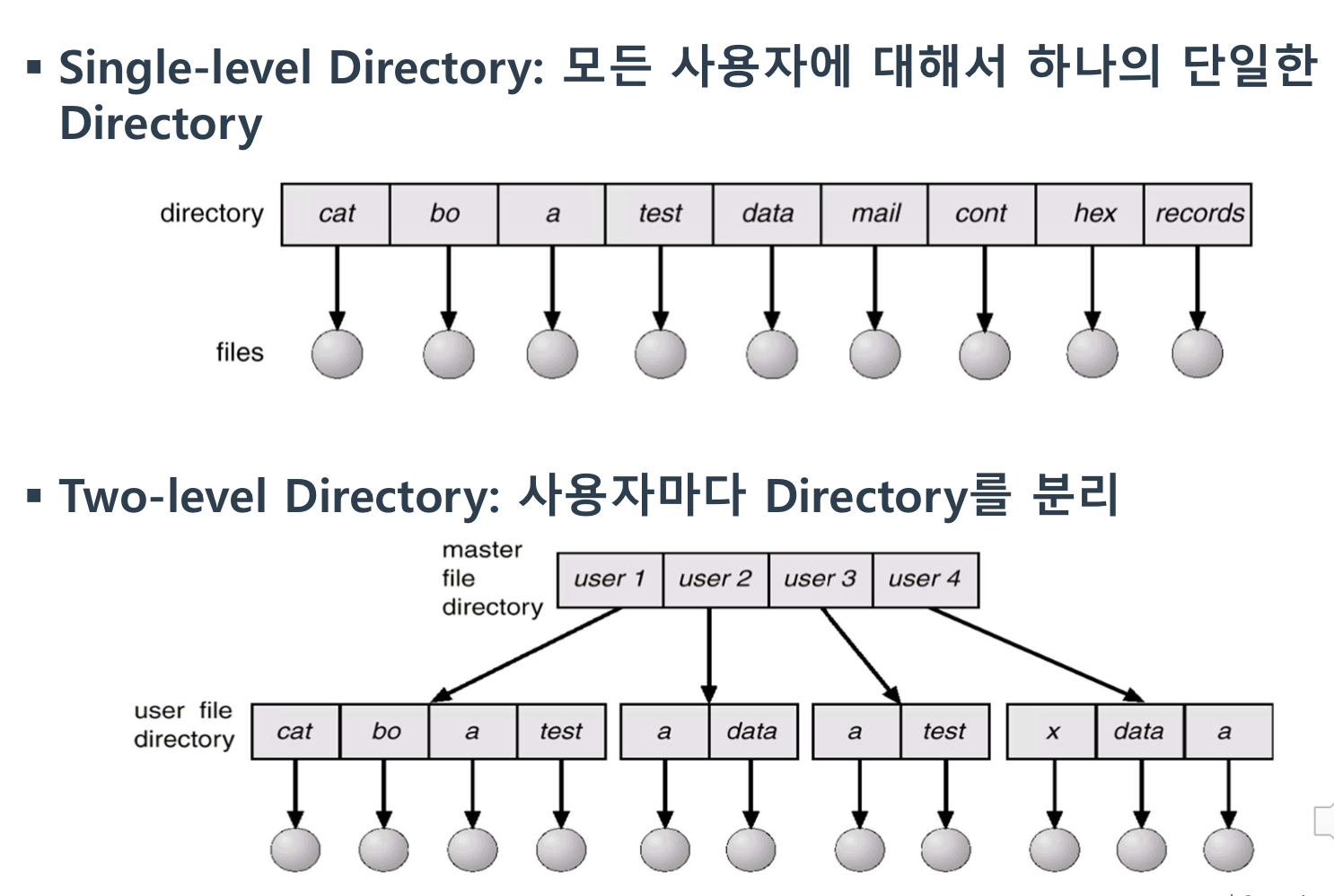 - Directory Structure와 File은 모두 Disk 상에 있음.