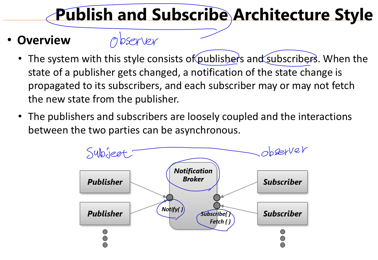 : Publisher와 Subscriber 사이에 Notification Broker가 있고 이를 통해 둘 사이를 연결해주기에 역할이 중요함.