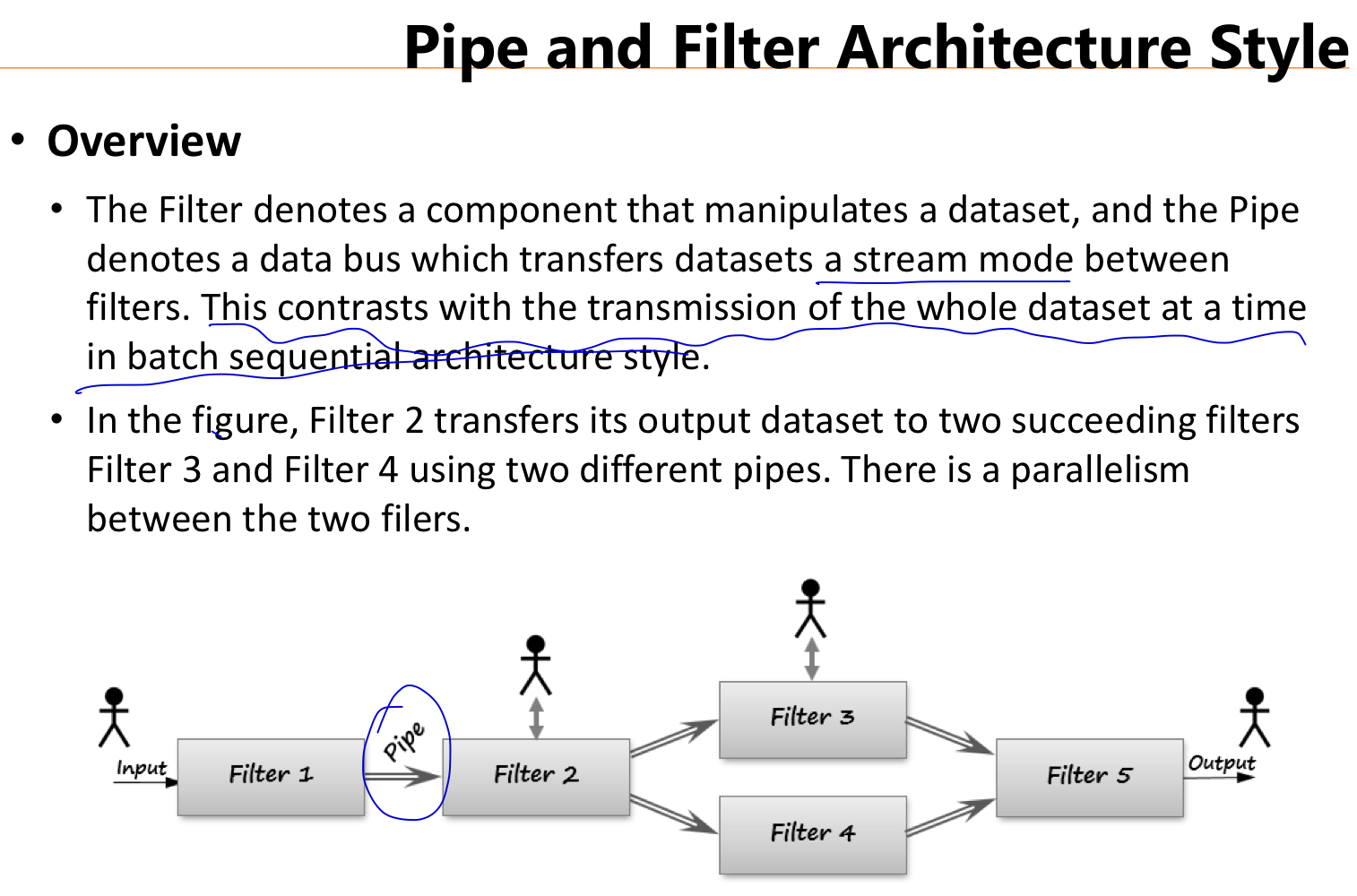 : Batch와는 달리 pipe로 구성되어 앞에서 보내는 족족 pipe를 통해 넘어감. 이때 각 컴포넌트는 Filtering을 함.(필터링을 병렬로도 처리가 가능함.)