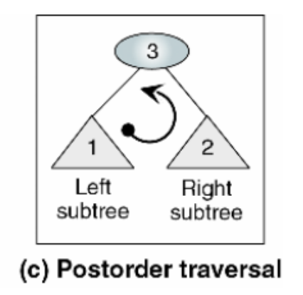 (3) postorder(후위 탐색): 왼쪽 -> 오른쪽 -> 루트 순으로 탐색