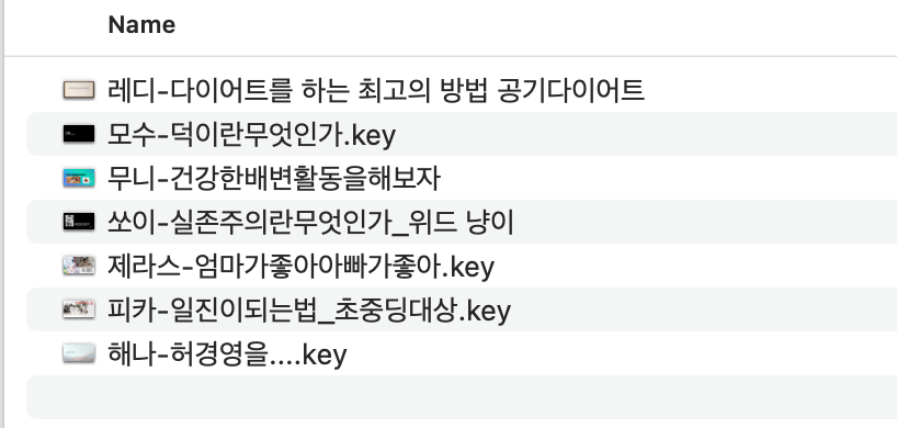 내용은 '각자 50분 내로 아무 주제의 Keynote를 완성하고 랜덤으로 섞어서 남의 것을 발표하는 활동' 이었습니다.