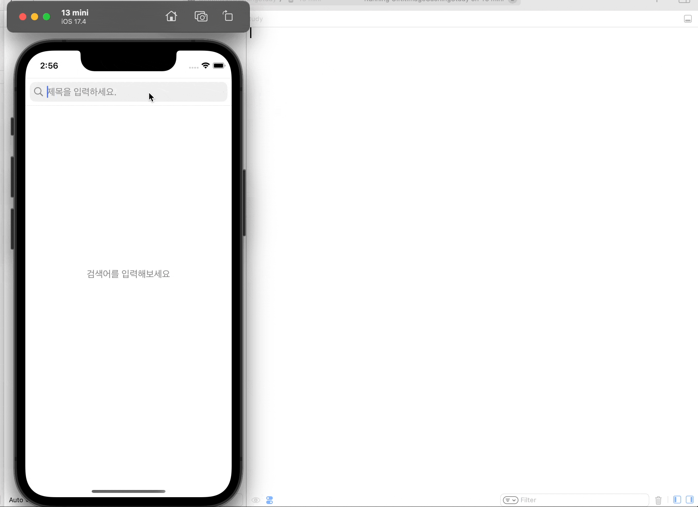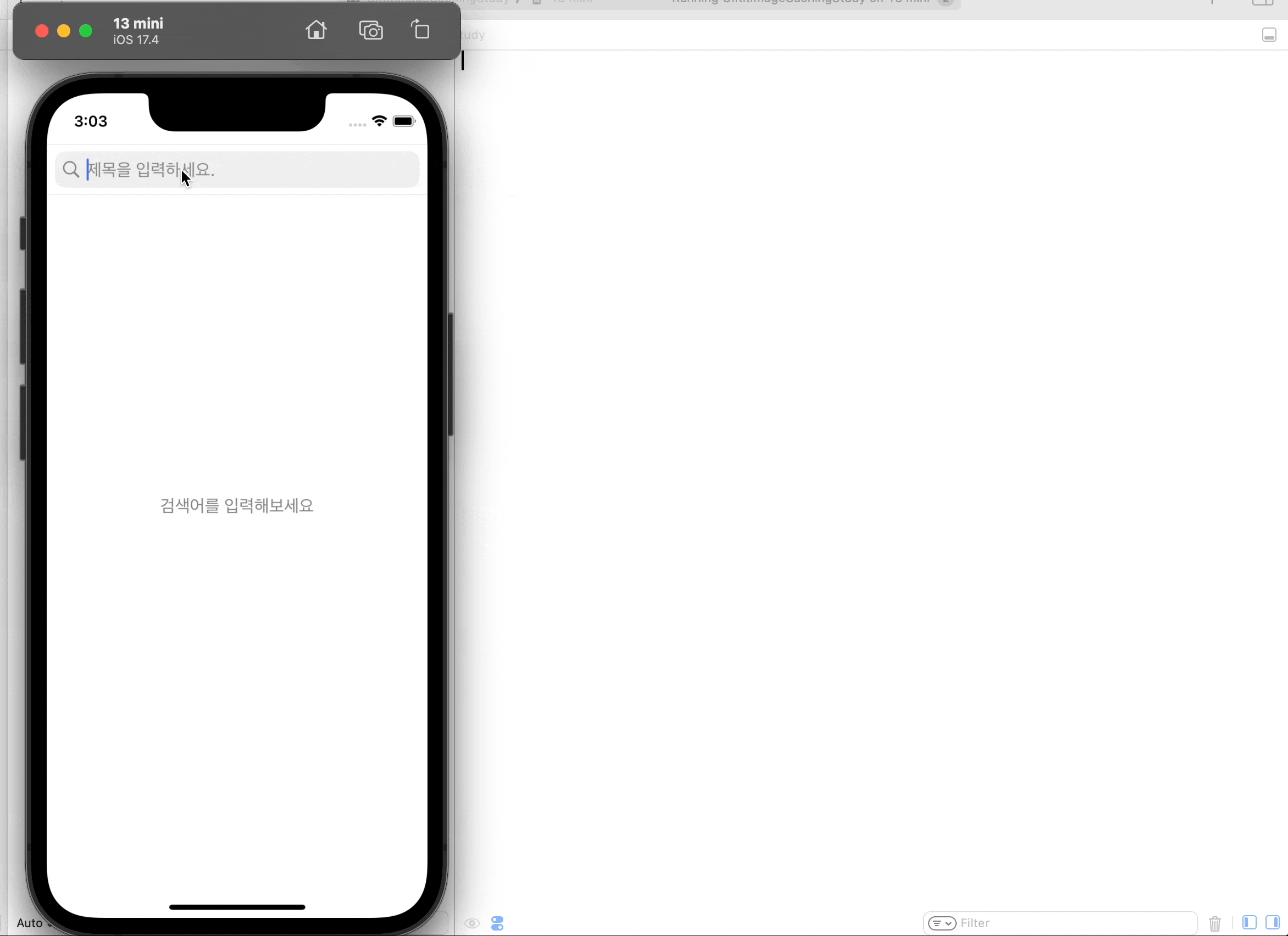 그래서 다음과 같이 '템플런'이란 검색어를 13 mini라는 시뮬레이터에서 처음 검색한 결과와 두번째 검색한 결과가 한눈에 봐도 데이터를 수신하는 속도가 다릅니다.