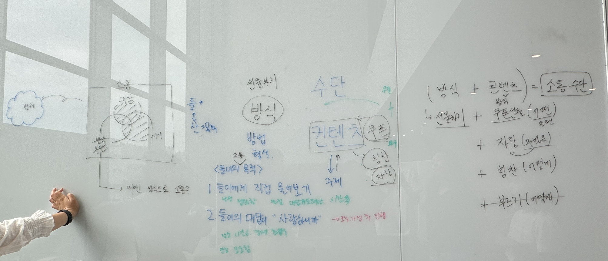 어떤 방식(형태) + 콘텐츠(그 안에 들어갈 내용)를 합쳐서 하나의 소통 수단을 만들어내고자 했습니다.