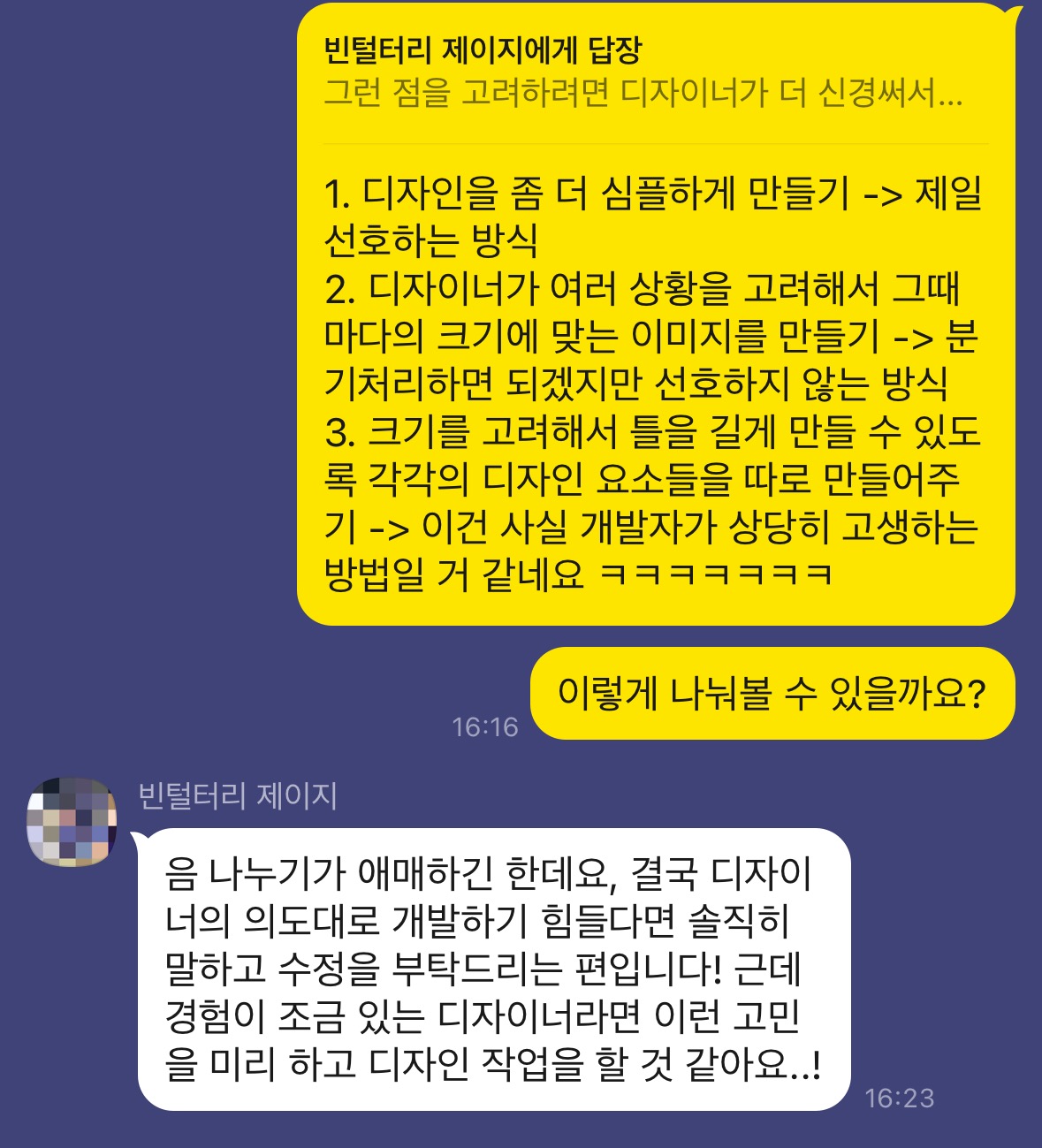 (물론, 이건 디자이너가 적극 소통을 하려고 하는 상황일 때 가능할 듯 합니다.)