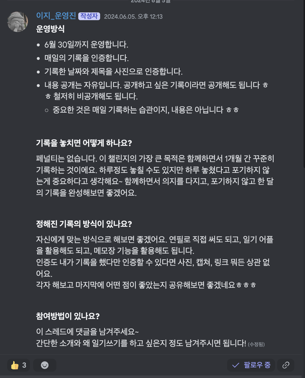 지난주에 부캠 커뮤니티에 올라온 일기 작성 챌린지를 꾸준히 수행 중인데...!