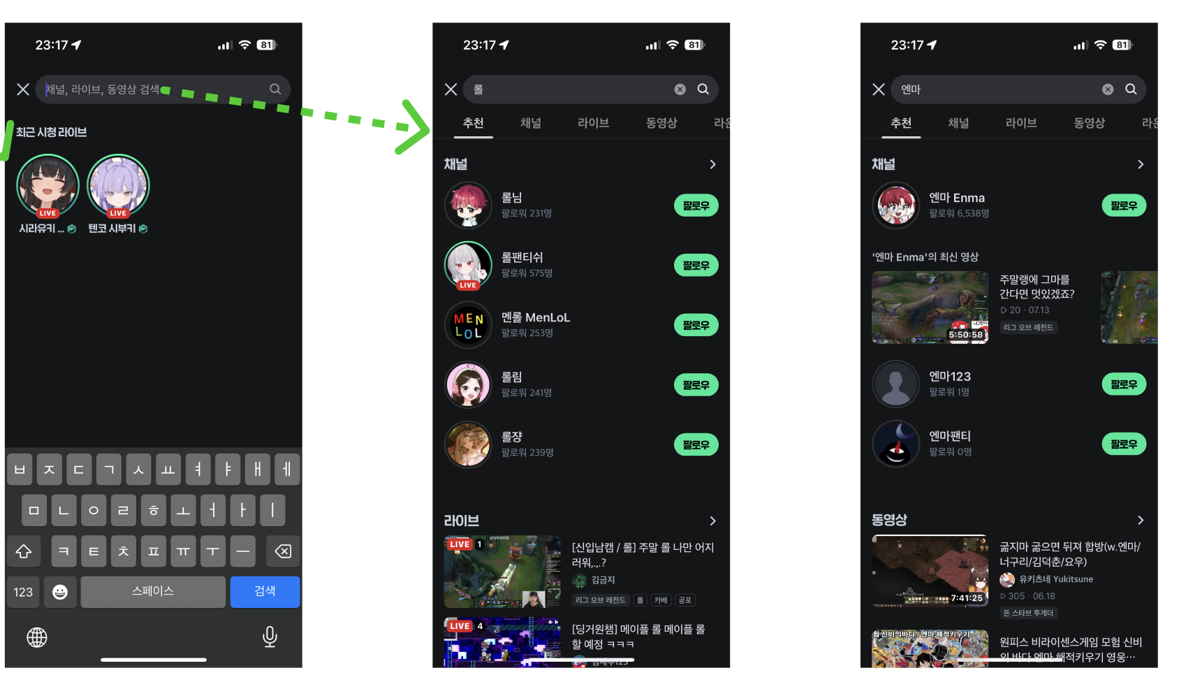들어가자마자 제일 먼저 눈을 끄는 건 Live 영상들인데,
