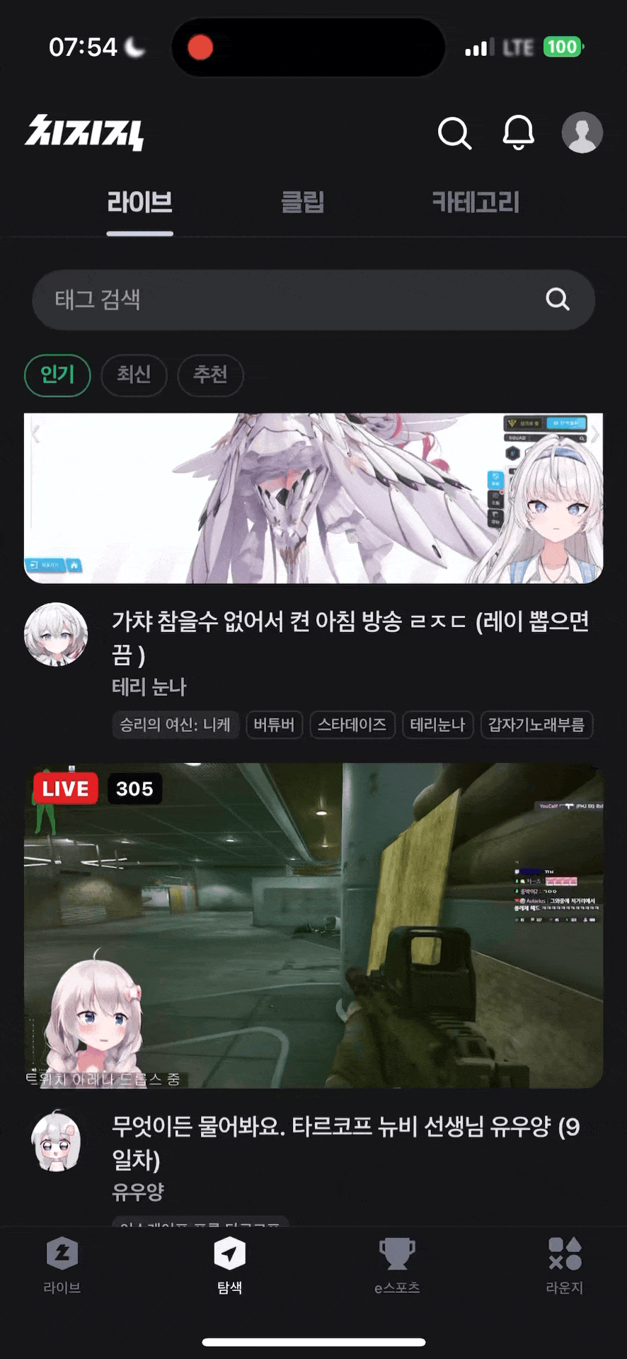 치지직에서는 가~~~장 많이 보인게 게임 방송들이었고, 버튜버 방송을 하시는 분들도 정말 많았습니다.