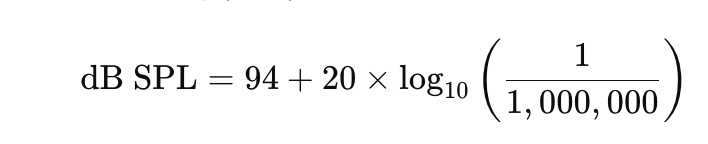 찾다보니 국제 표준 IEC 60942에서는 마이크로폰 소리 압력 측정을 위한 기준으로 94dB SPL을 설정했어요!
