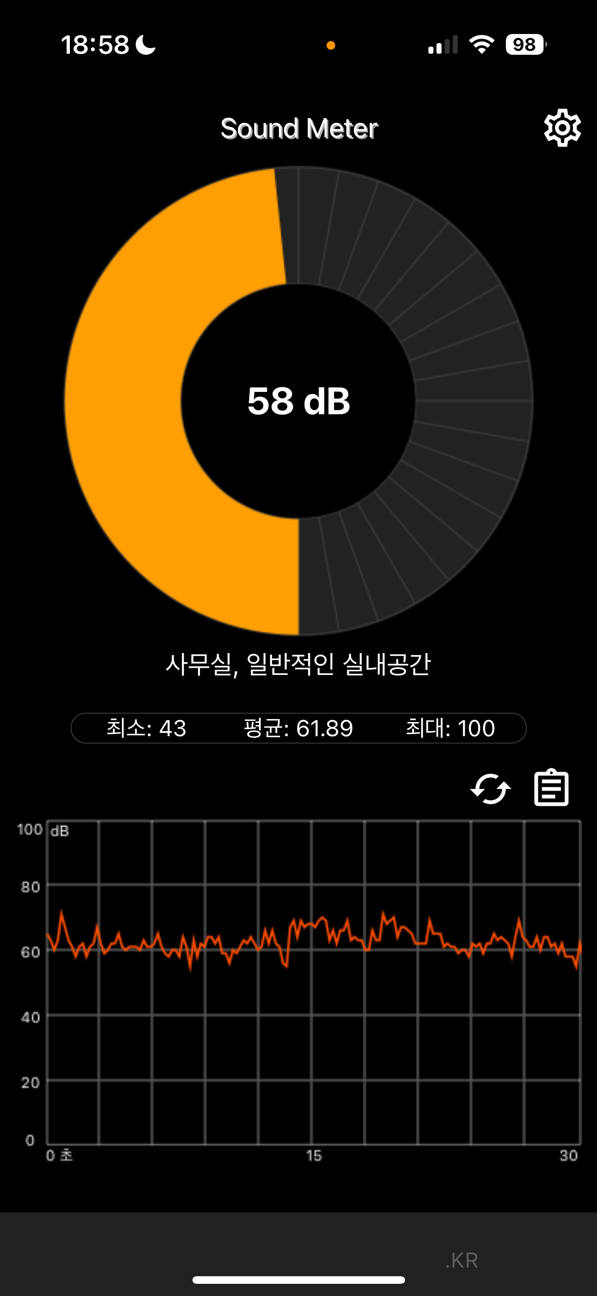 이렇게 Sound Meter라는 앱을 참고하면서 정도를 같이 파악했거든요~~