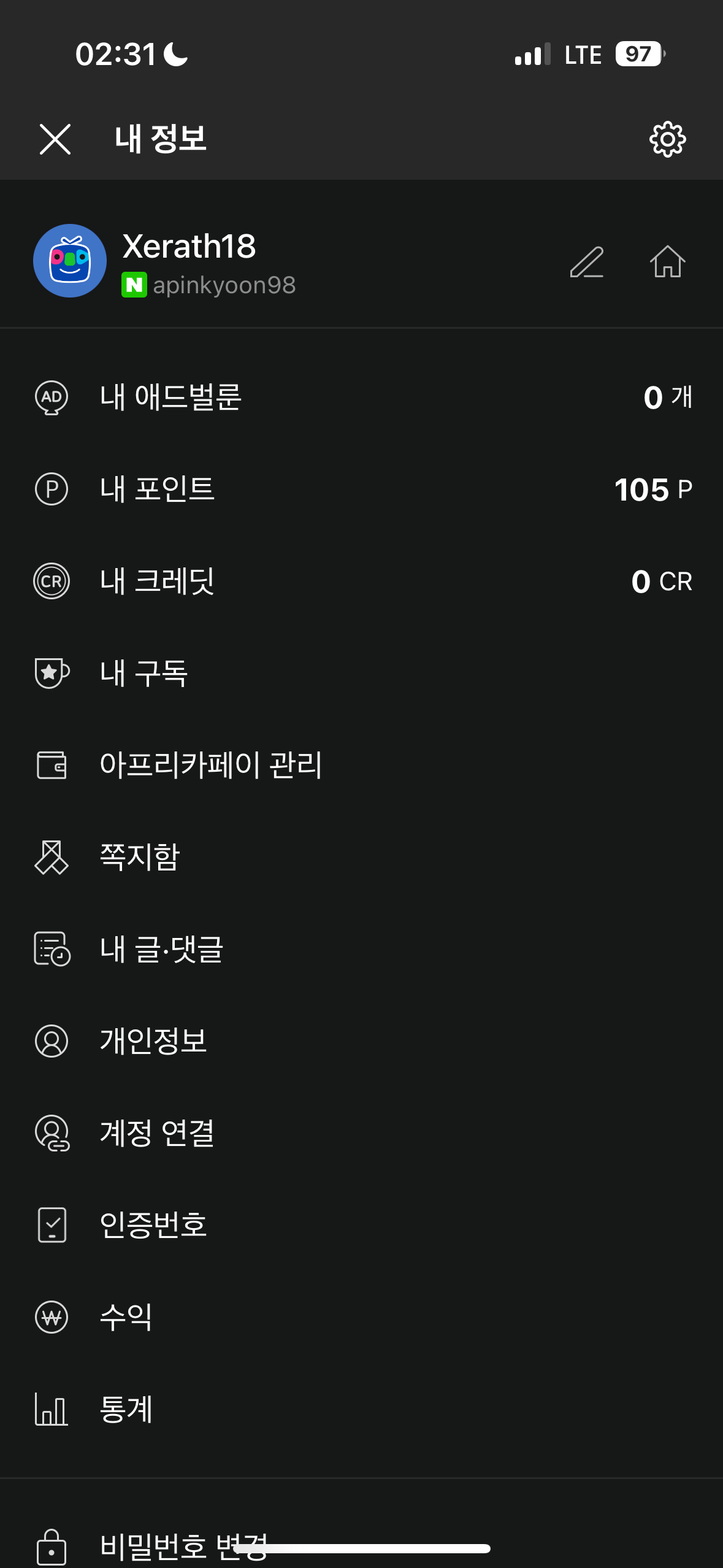 아무리아무리 뒤져도 안보이다가 아래의 내 정보 탭에서 홈 이미지 버튼을 누르니까 그제서야 뜨더라구요...!! 의이이잉이ㅣㅅ!!