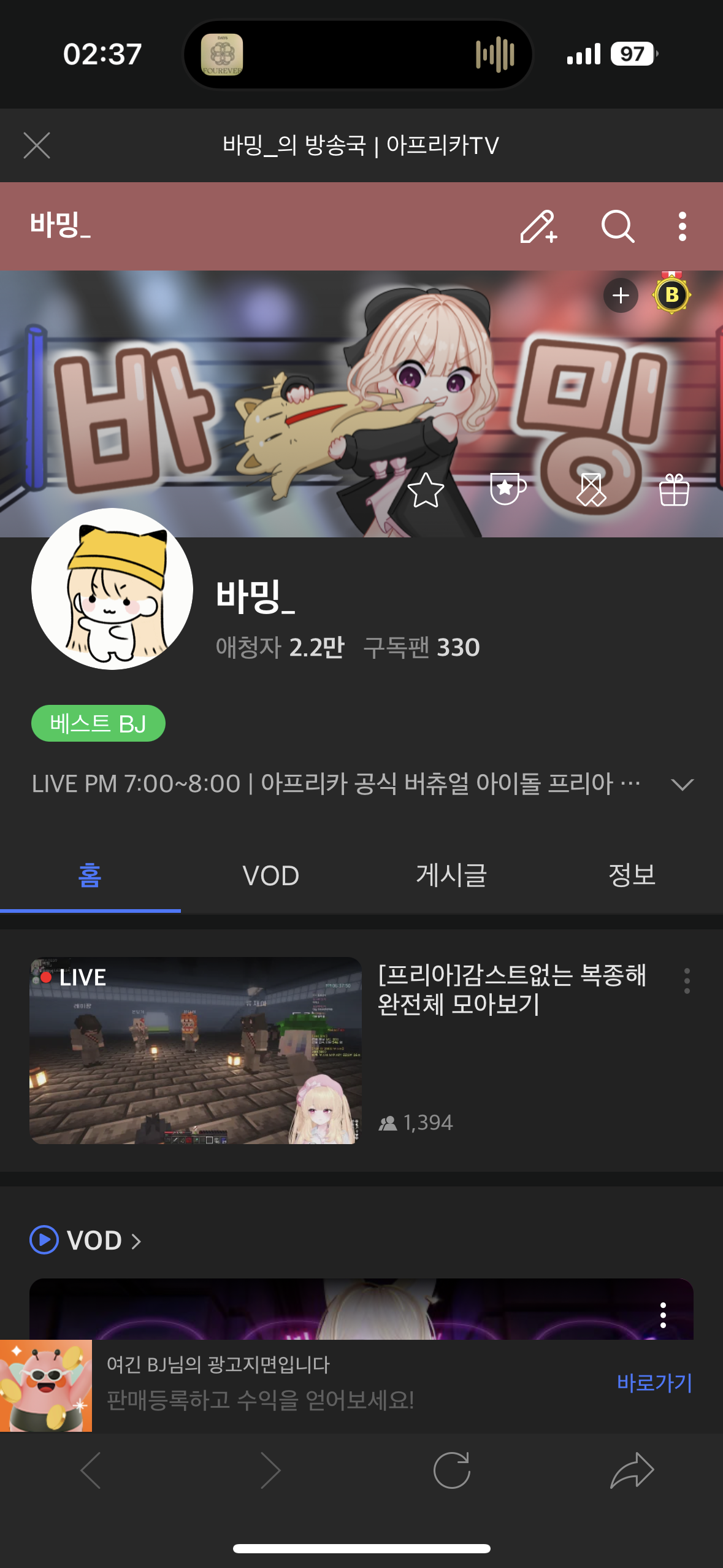 심지어 개인 방송국이란 단어도 주소 Title에만 뜨고, 내부에선 전혀 안 쓰는 점 + 이것마저도 웹앱인 점 ㅠㅠㅠㅠㅠㅠㅠ