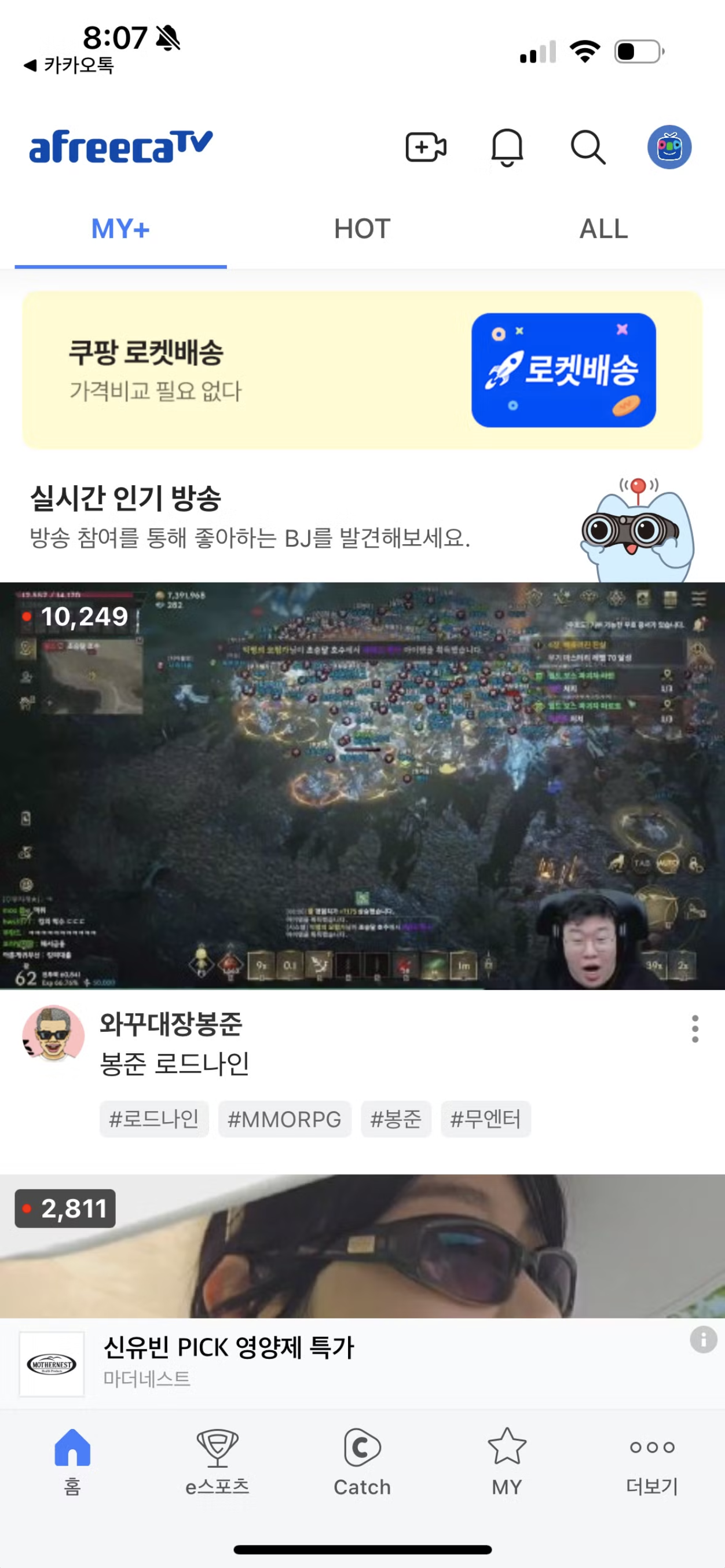 그럼 한번 아프리카TV는 어떤지 살펴보겠습니다.