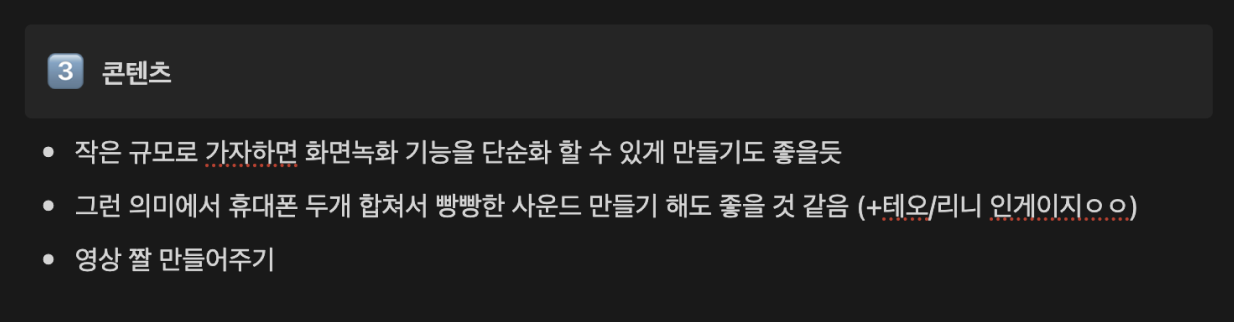 이때 이 대주제의 선정보다는 각 대주제에 대한 팀원들의 아이디어 공유가 필요했습니다!!