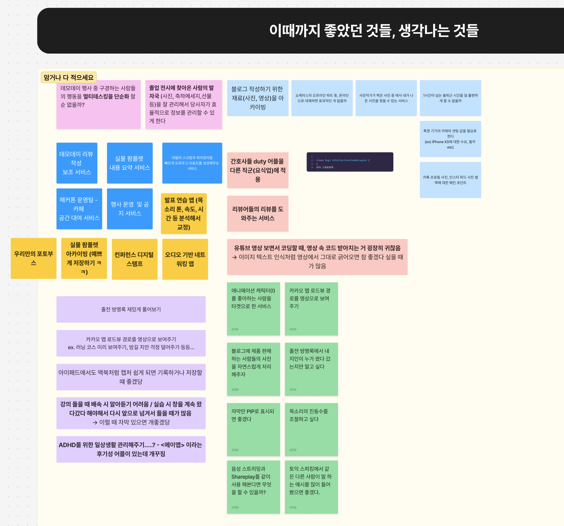 처음엔 정말 많은 아이디어와 키워드들이 나왔었고,