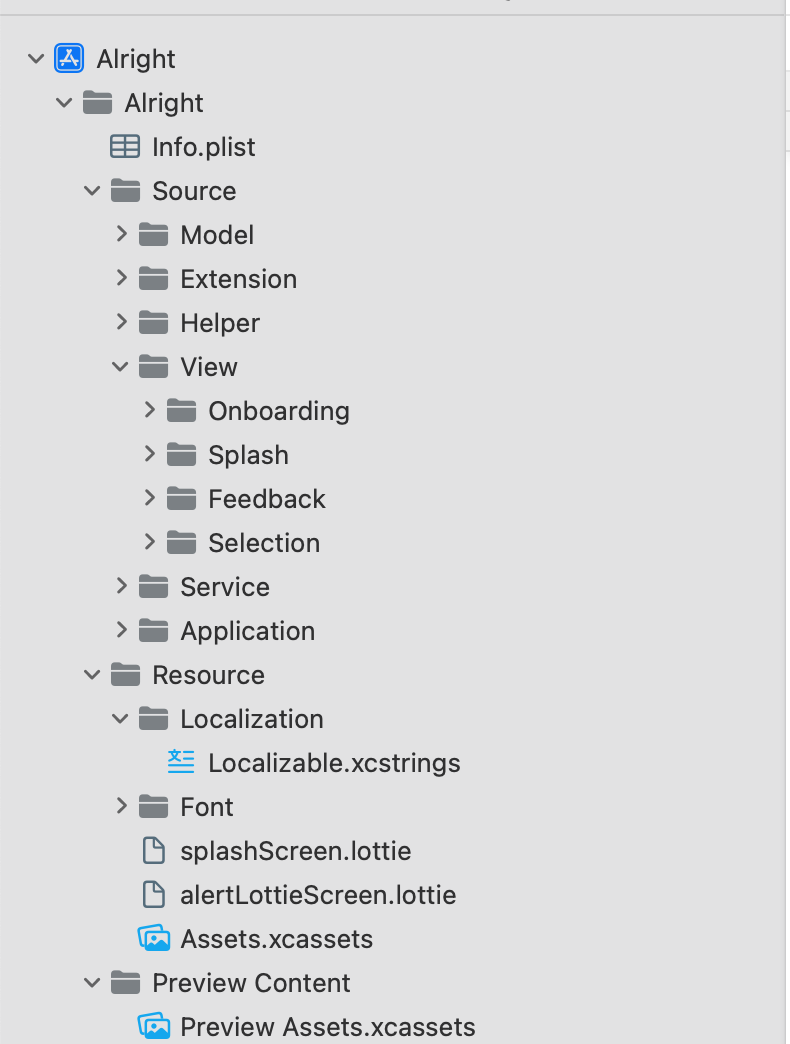 즉, Xcode에서 보이는 건 추상적인 UI일 뿐 실제로 파일 시스템과 동일한 건 아니에요.