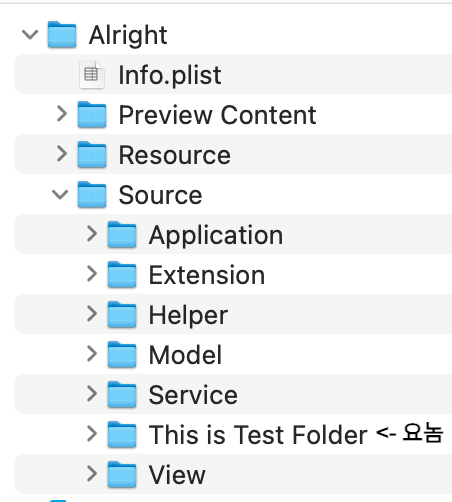 그래서 Folder 안에는 Group을 만들 수 없도록 Xcode는 설계가 되어 있습니다.
