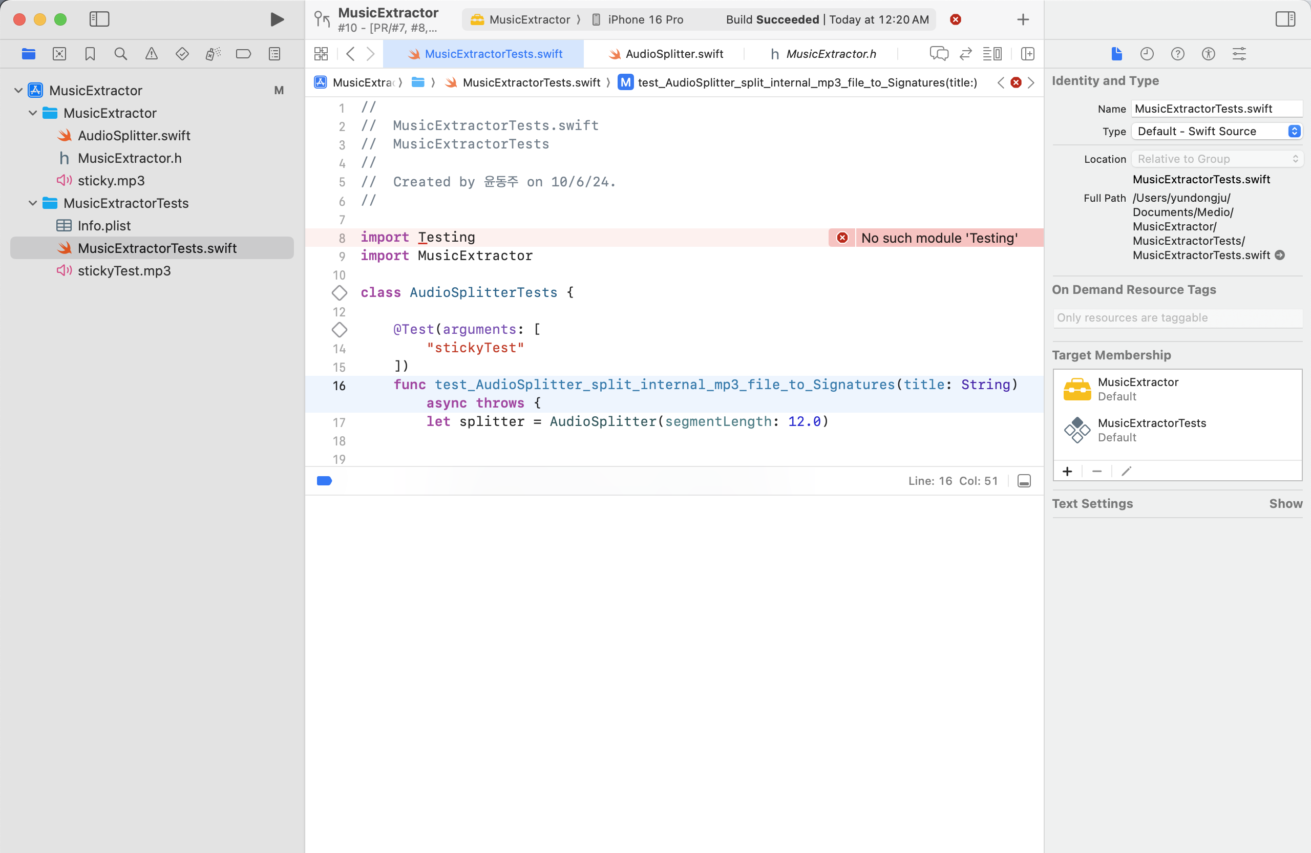 [iOS 개발 오류] No Such Module 'Testing' in Xcode 본문