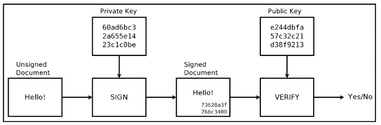 송신자의 개인키로 서명 : MSG -> MSG+Sign Value