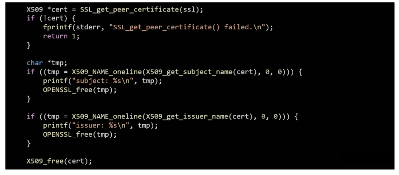 X509 *cert = SSL_get_peer_certificate(ssl);