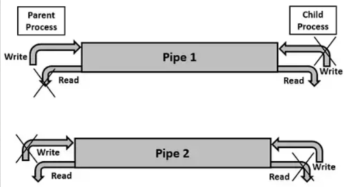 메시지 전달 모델 예시 [파이프] : 두 개의 프로세스를 파이프로 연결하여 하나의 프로세스는 데이터를 쓰기만 하고 다른 프로세스는 데이터를 읽기만 하며 데이터를 통신한다. 1:1 통신이면서 한 쪽 방향으로만 데이터가 이동한다. 주로 부모-자식 간의 단방향 통신으로 사용된다. 용량 제한이 있기 때문에 파이프가 가득 차면 더 이상 쓸 수 없다. 한 쪽 프로세스는 단지 읽기만 하고 다른 프로세스는 단지 쓰기만 하는 단순한 데이터 흐름에 적합하다.