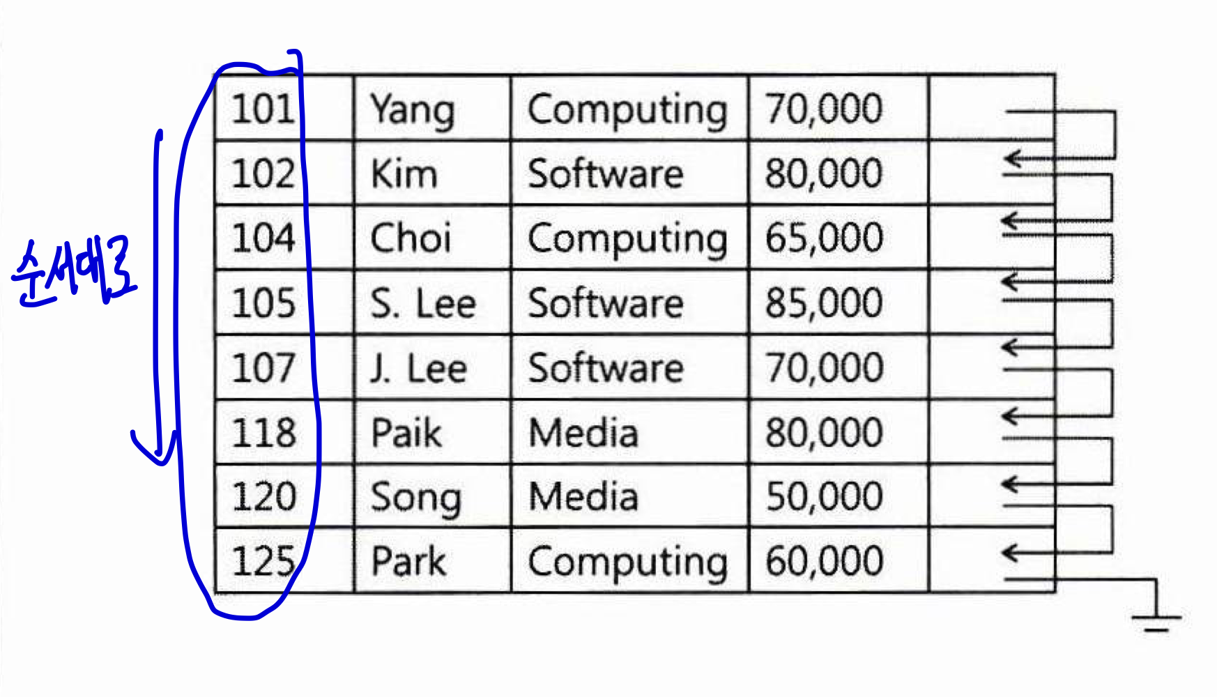 - Heap: 레코드를 화일 내의 아무 곳에 저장