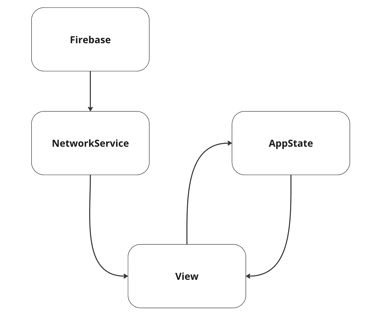NetworkService에선 CRUD를 하는 API를 가지고 있고 View는 이러한 NetworkService를 통해 데이터 통신을 해서 AppState에 저장을 하고 이 AppState를 View에서 사용하게 됩니다.